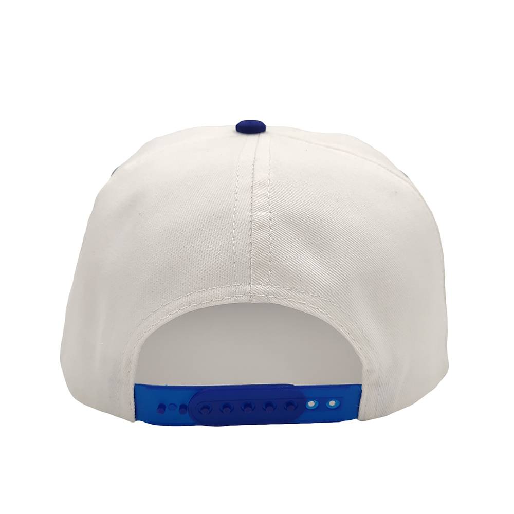 The promo cap only 5 panels, giving the front side an excellent option for a large imprint. With a plastic snap closure.