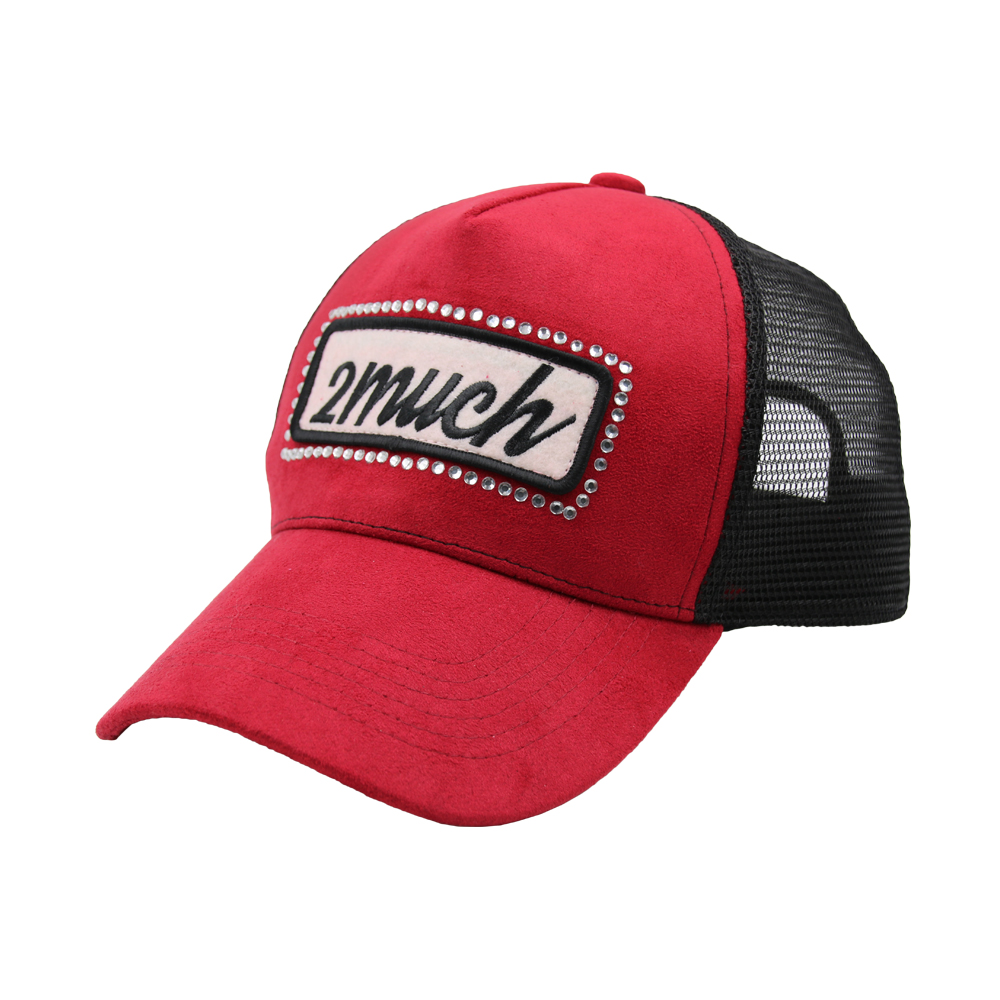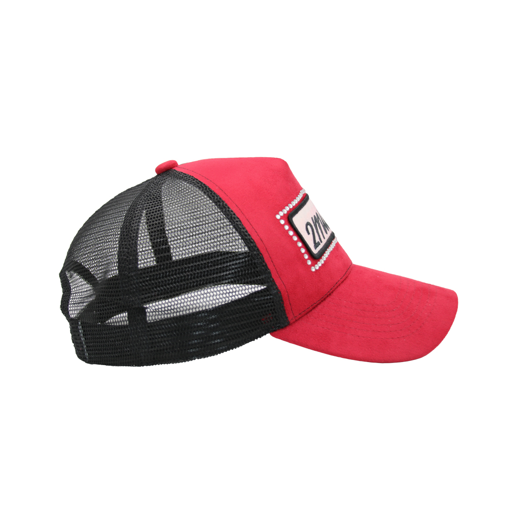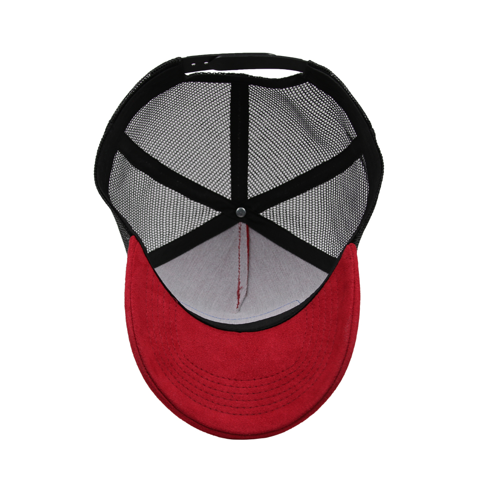 Red and black 5 panel snapback embroidery polyester mesh cap trucker hat